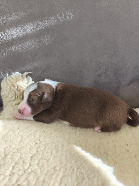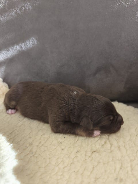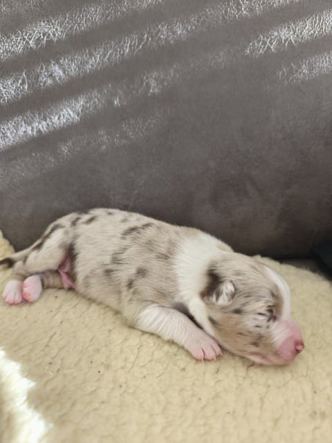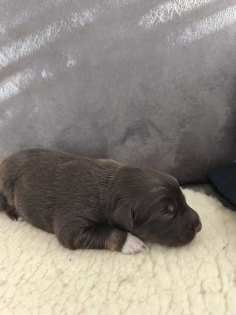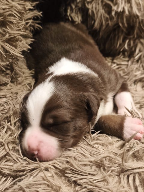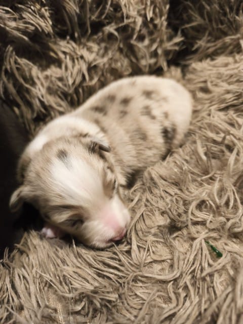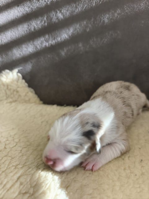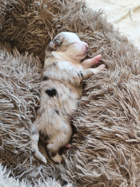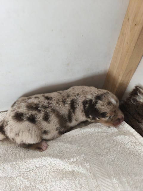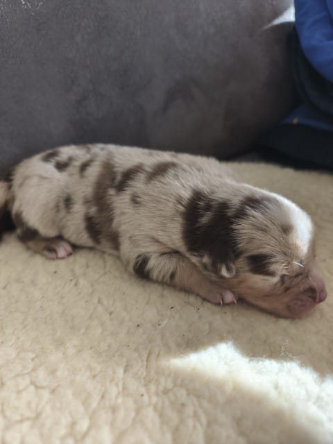 Maddy hat uns 6 wunderschöne Welpen in dark red tri und Red -Merle geboren