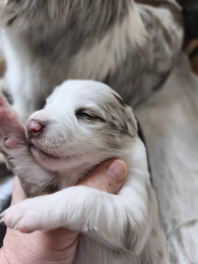 Dj´s Shadow Maila12.01.2026 4.06 Uhr, red merle Mädel 327 g Unser Herzi war begehrt und zieht zu Hanna und Vincent ins schöne Freiburg